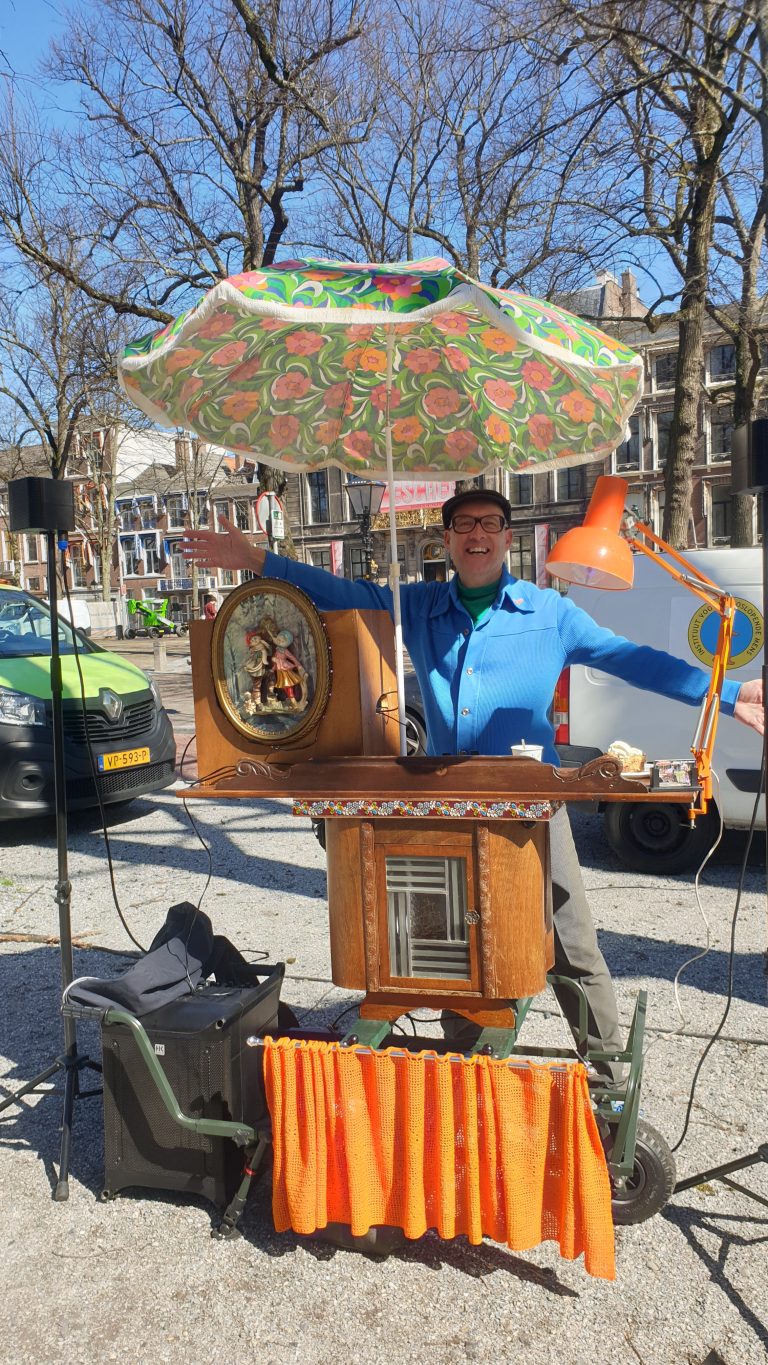 De troubadour kent duizenden liedjes. Speelt op het podium, aan…